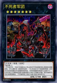 「不死者军团」1回合1次也能在自己场上的6阶不死族超量怪兽上面重叠来超量召唤。